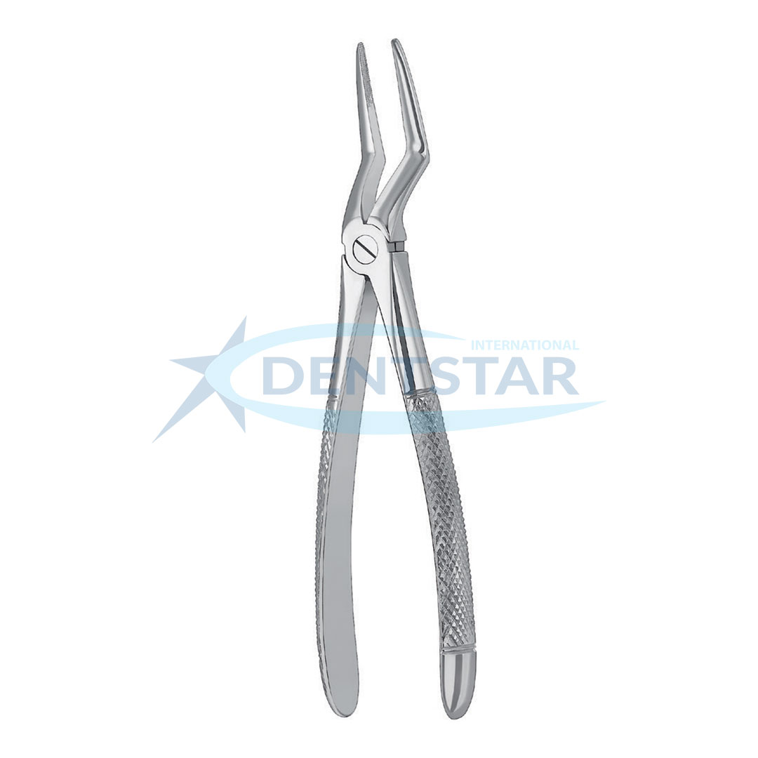 Extracting Forceps English Pattern Fig. 235 is a cornerstone of the mandibular extraction kit. Its specialized 90-degree “Hawk’s Bill” orientation is anatomically optimized to provide the necessary vertical leverage required to lift lower roots without obstructing the clinician’s line of sight. At Dentstar International, we ensure every Fig. 235 is hand-finished in Sialkot, guaranteeing that the beak tips meet with absolute precision for a secure, non-slip grip.