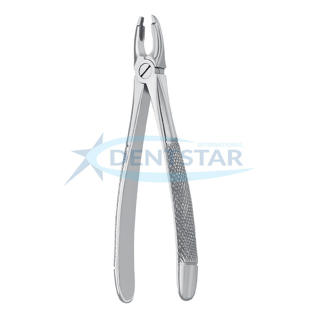 Extracting Forceps English Pattern Fig. 34 is an essential tool for oral surgery, optimized for the unique anatomy of the lower anterior teeth. Its specialized beak curvature allows clinicians to maintain a clear line of sight while providing the necessary leverage for atraumatic extractions. At Dentstar International, we ensure every instrument is hand-finished in Sialkot to meet global surgical standards.