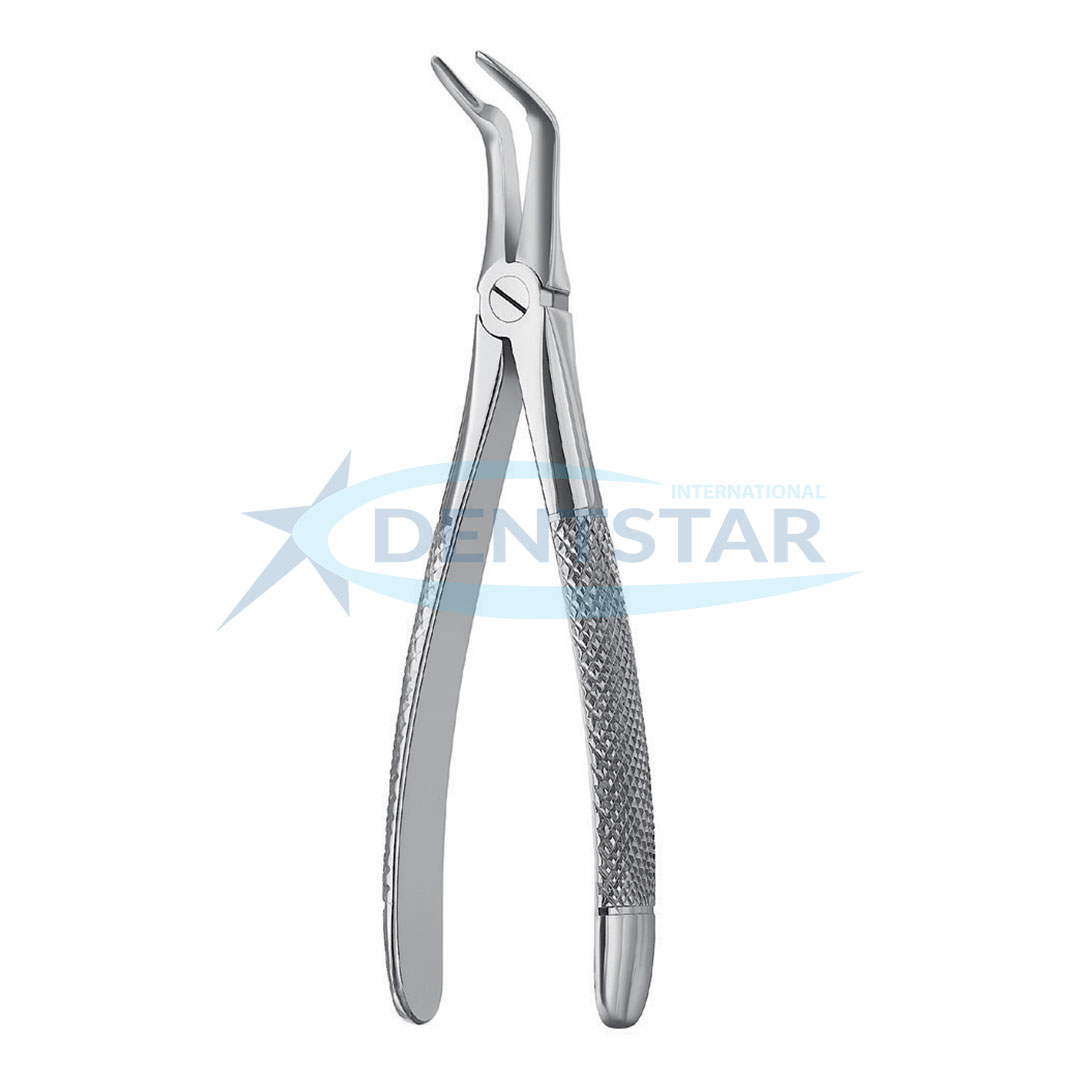 The Extracting Forceps English Pattern Fig. 46L is an essential tool for oral surgeons performing complex mandibular extractions. Designed with an emphasis on reach and visibility, the 46L variant (often used for the left quadrant or as a long-beak version) ensures a stable grasp on root fragments that are submerged or difficult to access. As a premier manufacturer in Sialkot, Dentstar International ensures each instrument is hand-finished for perfect joint alignment.