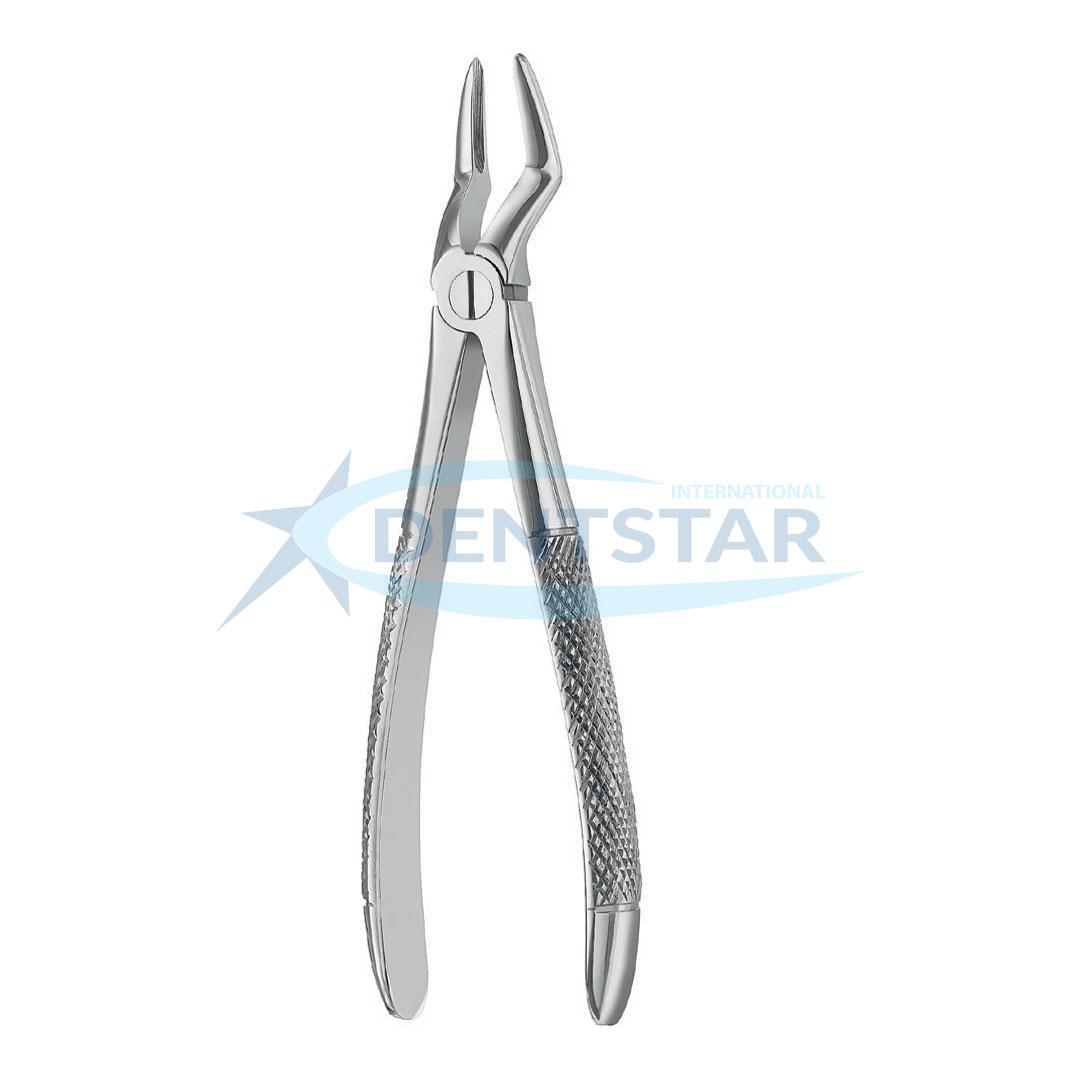 Extracting Forceps English Pattern Fig. 51 is a fundamental tool for oral surgeons, optimized for the retrieval of upper root fragments. Its straight design and fine beak geometry allow for direct vertical force application, making it the ideal choice for atraumatic extractions in the maxilla. At Dentstar International, we ensure every instrument is hand-finished in Sialkot to meet global surgical standards.
