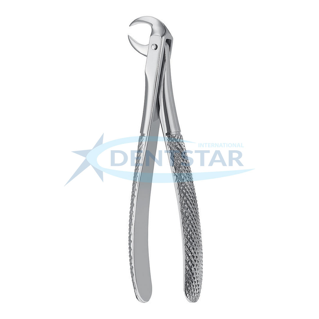Extracting Forceps English Pattern Fig. 86A, commonly known as the “Cowhorn” forceps, is an essential tool for difficult mandibular molar extractions. Its unique beak geometry is designed to penetrate the bifurcation of the lower molar roots. As the handles are squeezed, the pointed beaks act as a wedge, facilitating the elevation of the tooth from the socket with minimal effort. At Dentstar International, we ensure every Fig. 86A is hand-finished in Sialkot for maximum sharpness and hinge precision.